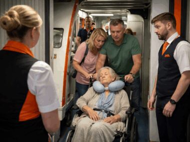 Passengers on a London-bound flight out of Málaga say they watched a family wheel an elderly woman onboard and insist she was already dead—after relatives told staff she was “just tired.” The airline disputes that, saying she boarded alive with a fit-to-fly certificate but died onboard before takeoff, forcing the aircraft back to stand and triggering an all-day delay.