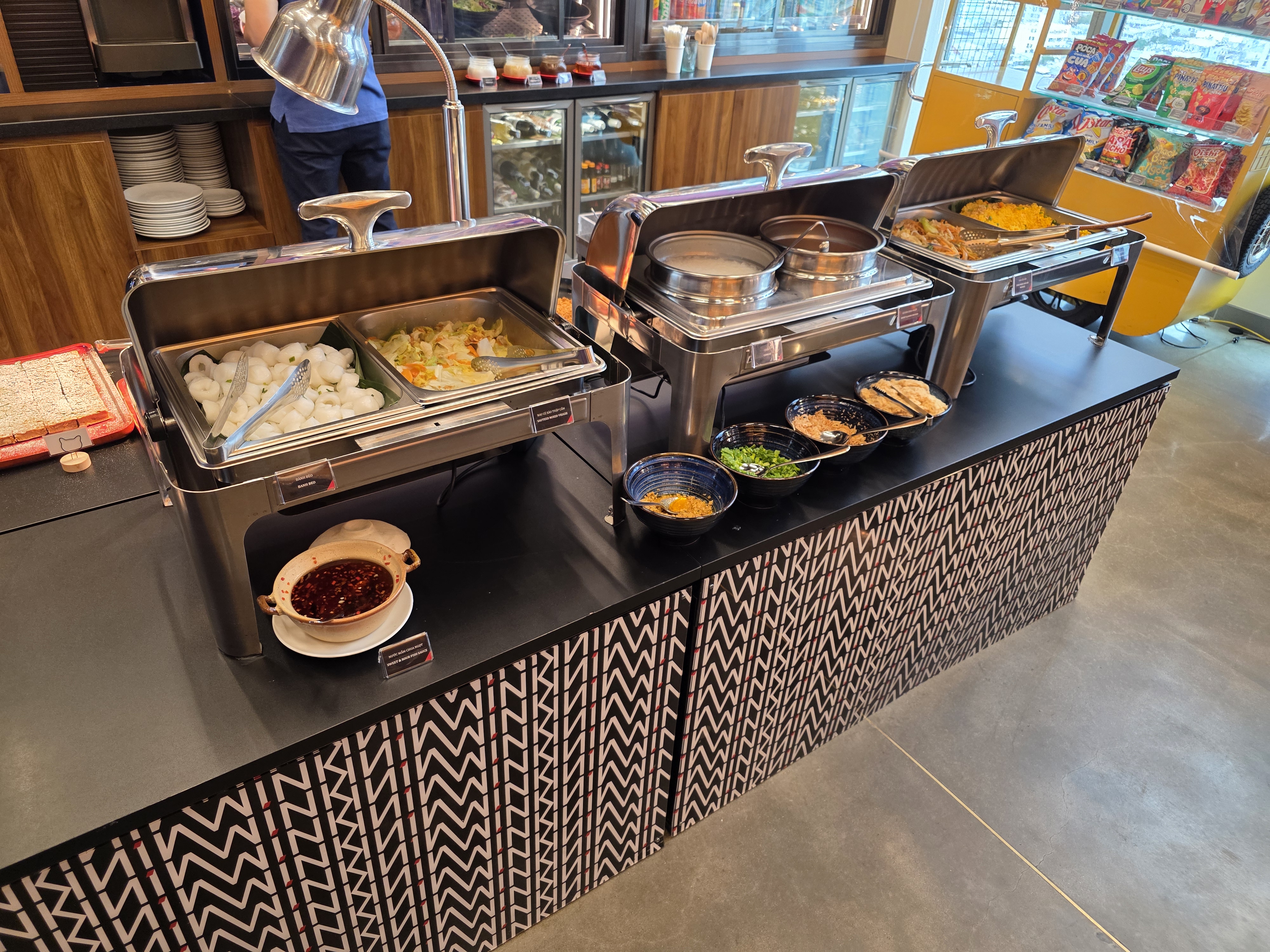 While there was a Vietnamese coffee station and an automatic espresso machine included in the buffet, I elected to spend $2 for a barista-made latte at the bar, which was excellent.