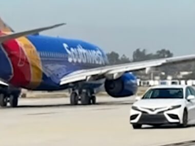 Video from Orange County’s John Wayne Airport shows a contract security guard in a white sedan racing down an active taxiway between jets as air traffic control calls a “high speed chase on the taxiway.” Planes slam on the brakes, workers scramble, and officials now blame a “possible medical episode.”