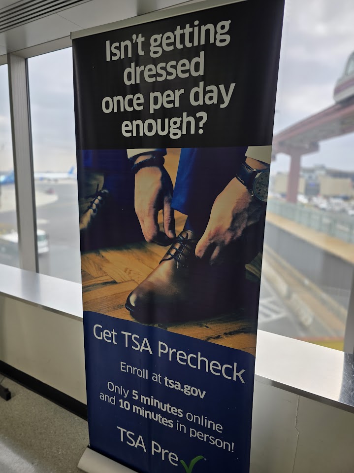 - Frequent flyers with PreCheck spend more time in airport security lines each year than infrequent flyers without it. Meanwhile here’s TSA at Newark last week still promoting the shoe carnival as a reason to get PreCheck. But sort of an odd symbol of ‘economically divided’ public spaces when it costs $17 per year (with renewal even cheaper).