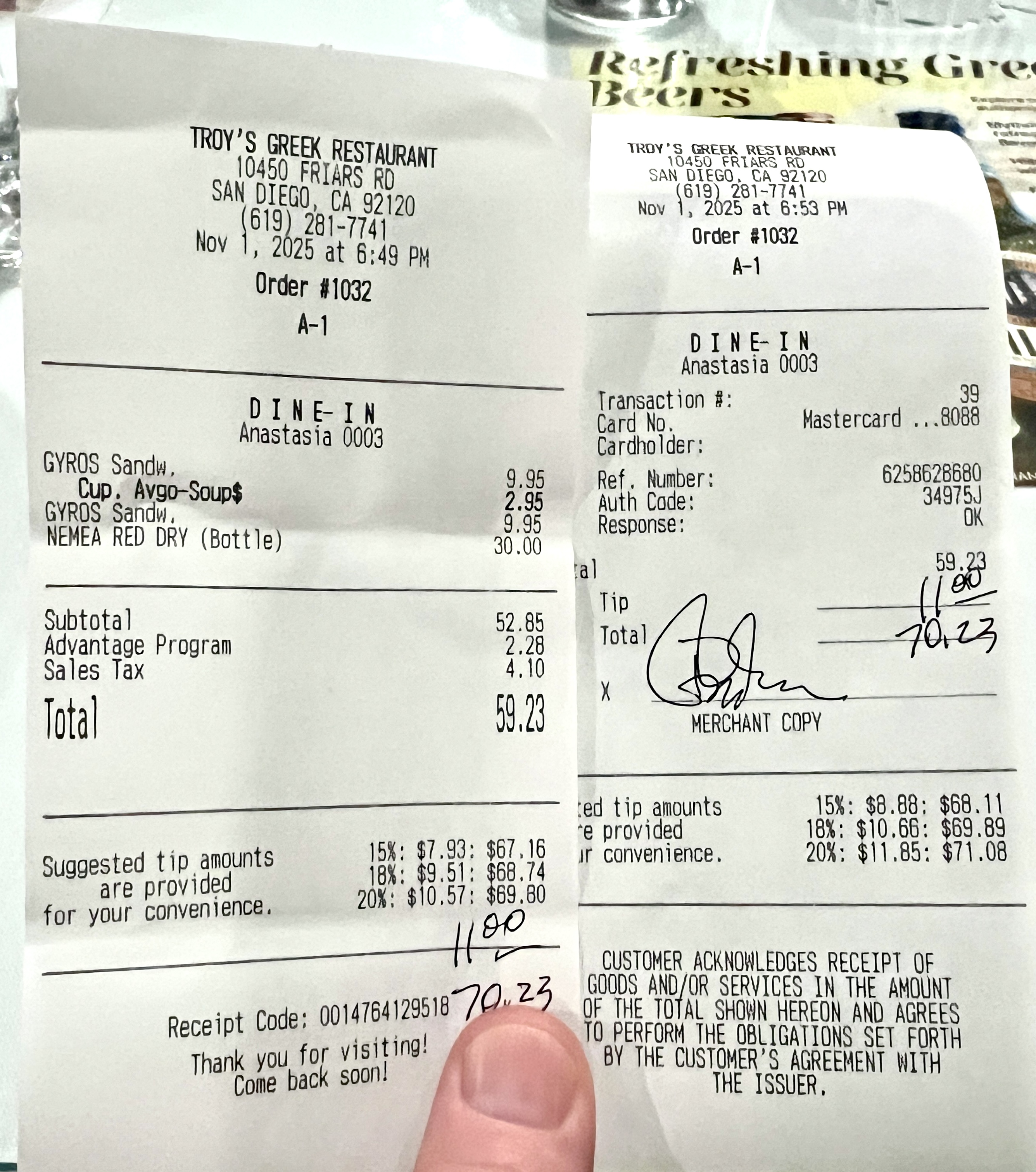 If Troy’s Greek Restaurant in San Diego renamed their “Advantage Program” surcharge to “DISadvantage Program” surcharge, it would demonstrate their commitment and dedication to Truth-in-Advertising practices.