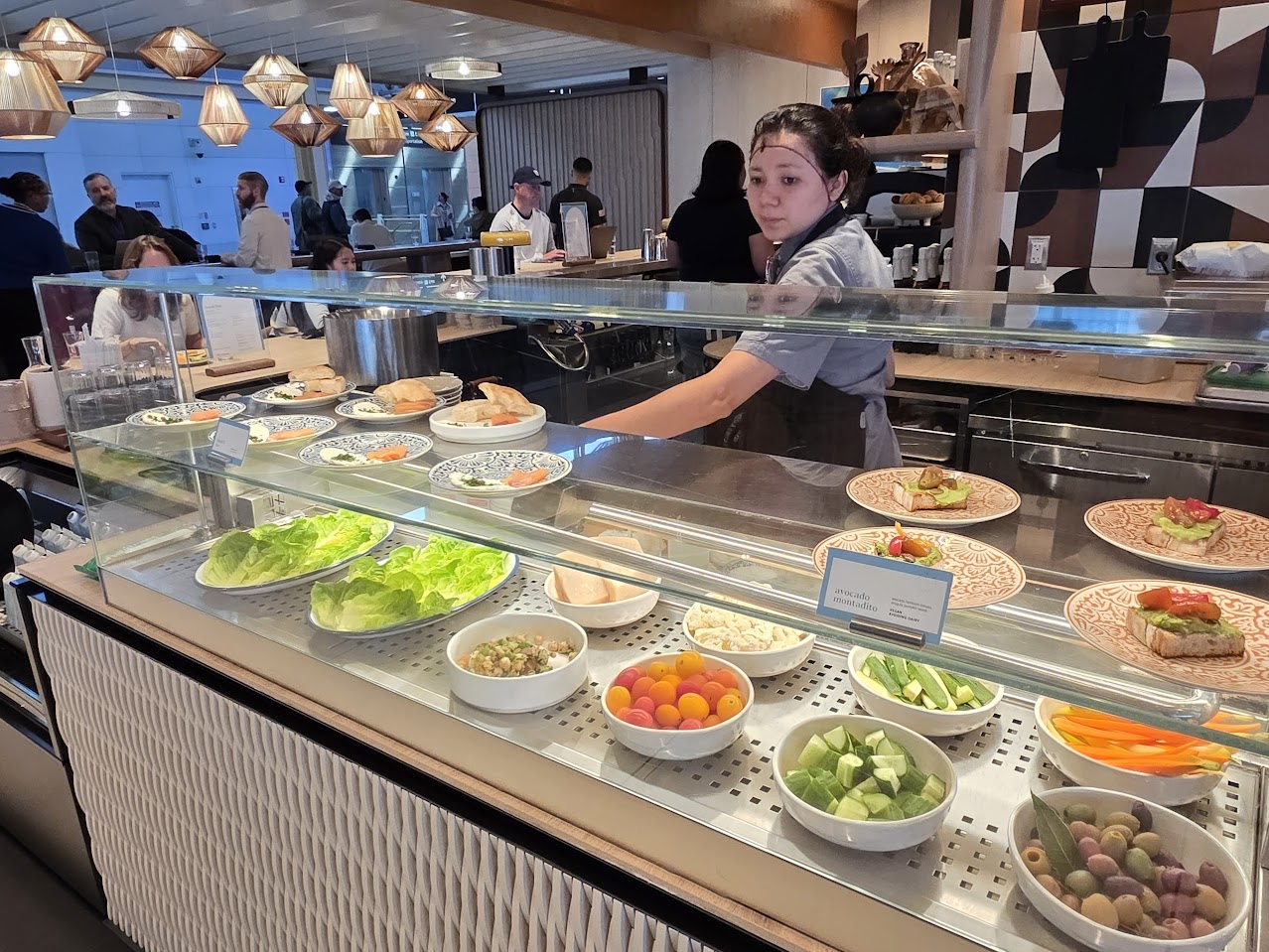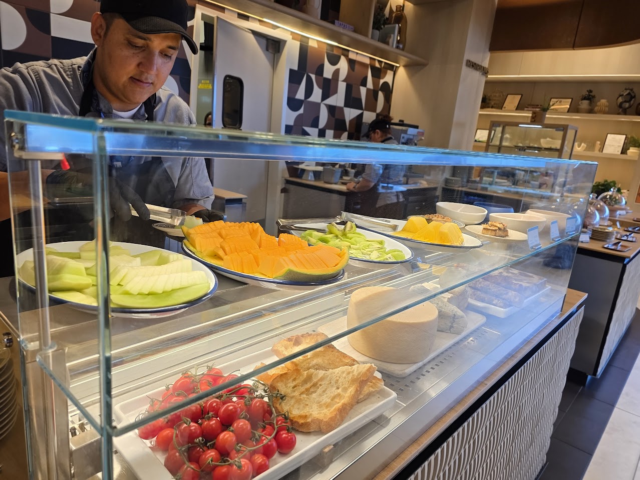 Successful and time-crunched people are not sitting down to a bacon an egg breakfast before a day or work. Offering a cereal and milk/yogurt with fruit (as a baseline) is wise because it isn’t going to vary meaningfully in regard to quality/freshness from the same items I prepared quickly at home (dumping milk over some granola or eating some berries).