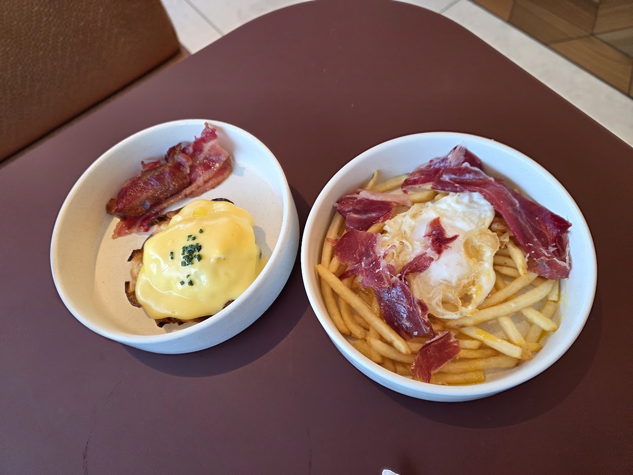 The highlight though is real eggs paired with quality meat. The difference in bacon here versus on the buffet in the Admirals Club was striking. I wouldn’t touch that, but this was just delicious and indulgent. It was eggs, but well-prepared, and still interesting rather than bland.