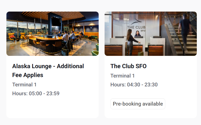 That means both SFO airport Priority Pass lounge options in terminal 1 include a premium cash component, since The Club lounge there offers paid reservations to avoid queueing.