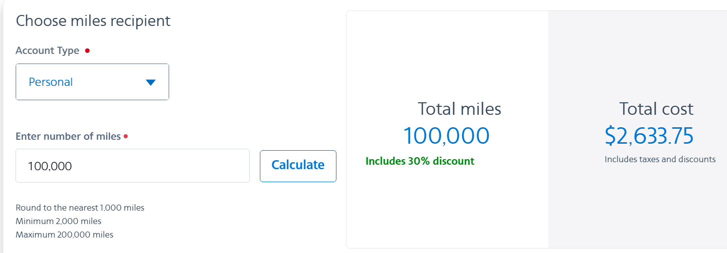 They were just selling miles for Black Friday at less than 1.9 cents apiece. They used to sell at that price regularly (and the miles were worth a bit more). I’d value the 100,000 miles at $1,300 – $1,500 but today’s price to buy 100,000 miles is $2,633.75.