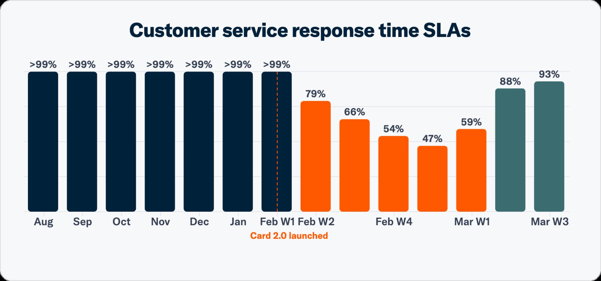 Notably, though, they acknowledge their “support experience” lagged and “response times went up” after the new card product launched, though they suggest they’re close to reverting to goal now (they don’t define what that is).