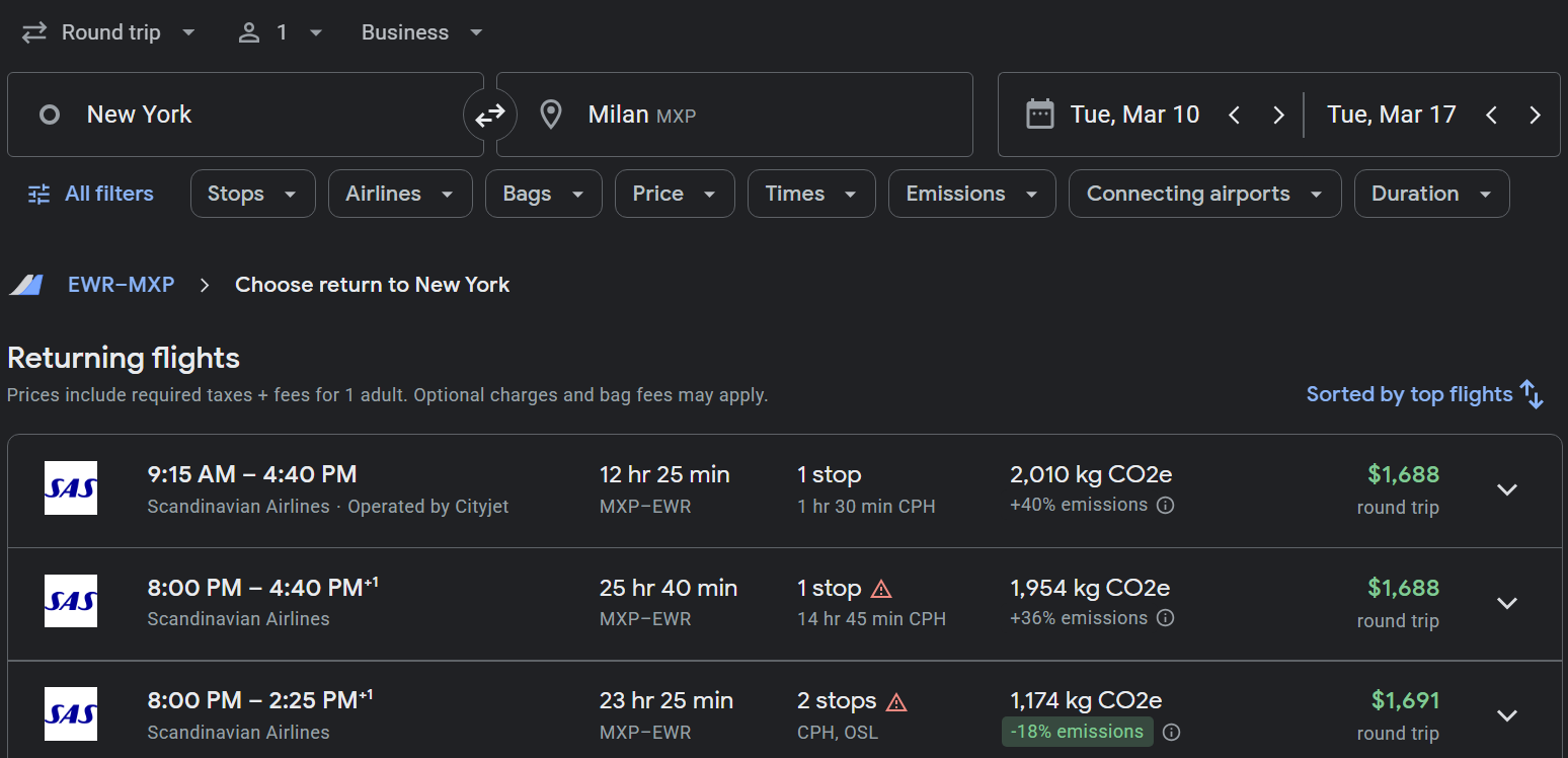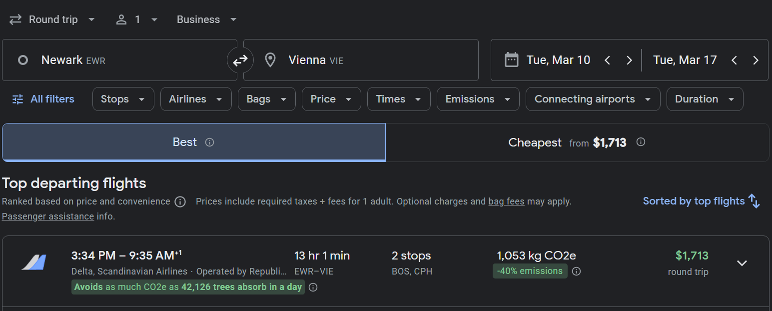 Destinations like Rome, Milan and Vienna are available the cheapest – followed by Copenhagen, where you can even travel non-stop back to the U.S. – and in the ~ $2,500 range you have your pick of most of Europe.
