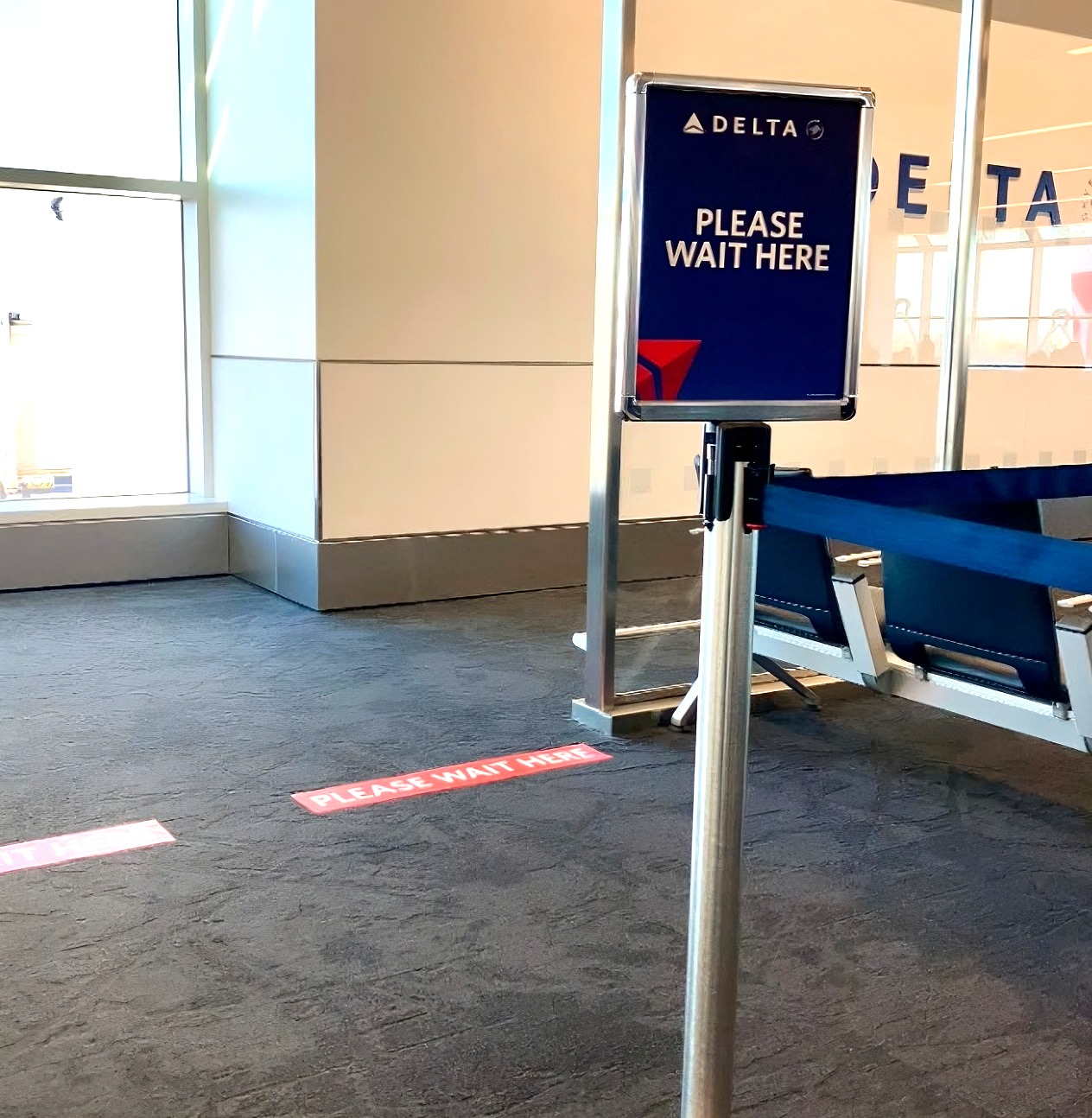 On a flight this week out of Atlanta, I noticed something new from Delta Air Lines, a bright red “Please Wait Here” line on the floor as you approach the gate. I assume the idea was to manage crowding and create a smoother boarding experience.