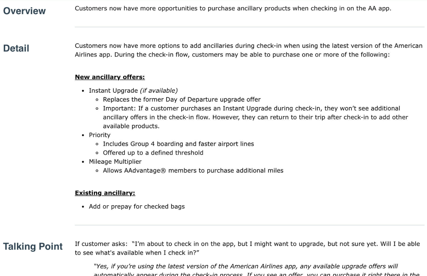 - American Airlines: “Customers now have more opportunities to purchase ancillary products when checking in on the AA app.” Yay?