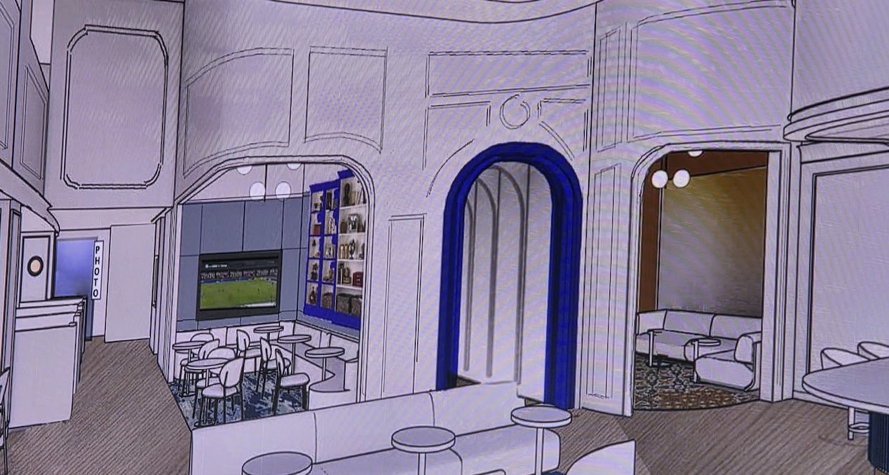 The lounge ceiling is inspired by Grand Central Station, and she describes the lounge as having a residential design. In the back of the lounge there’s a photo booth which she flags may not be open on the lounge’s day one.