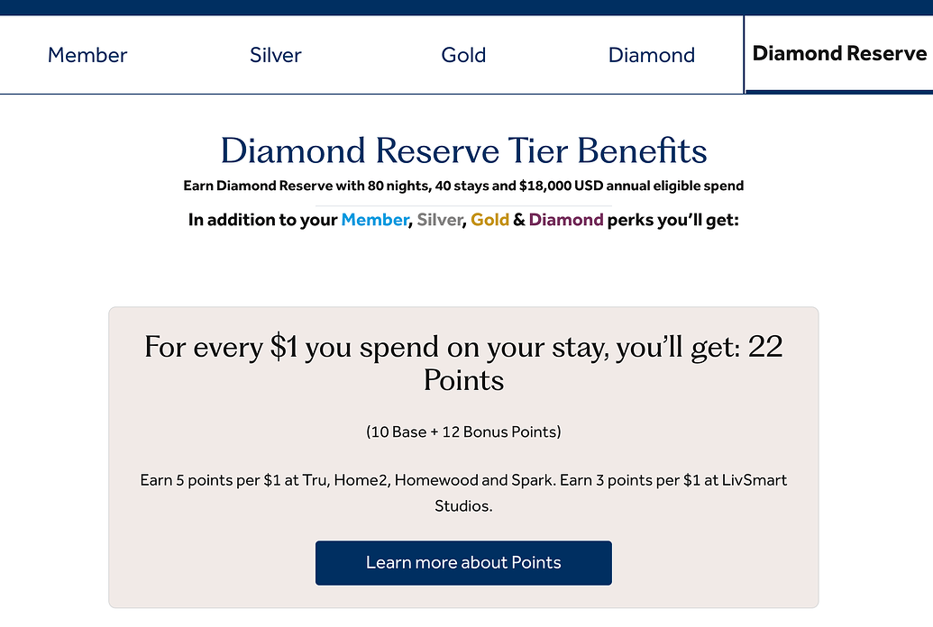Reading between the lines… Hilton Diamond is the new Marriott Platinum… many ‘earn’ it by paying a $550 annual fee… it’s mostly good for ‘free’ breakfast (often, a mere $25 credit!)… otherwise, gonna be a lot of ‘sorry, due to availability…’ for any and all requests for upgrades, early or late check-ins.