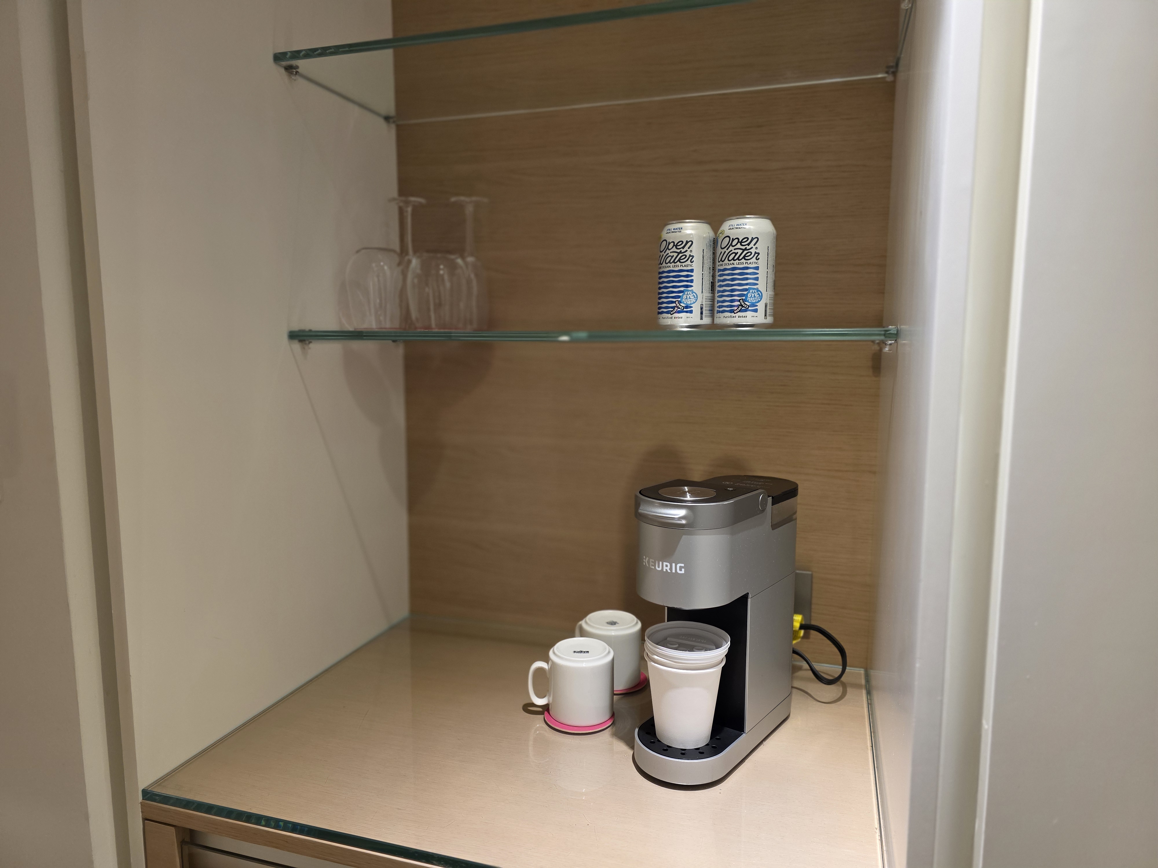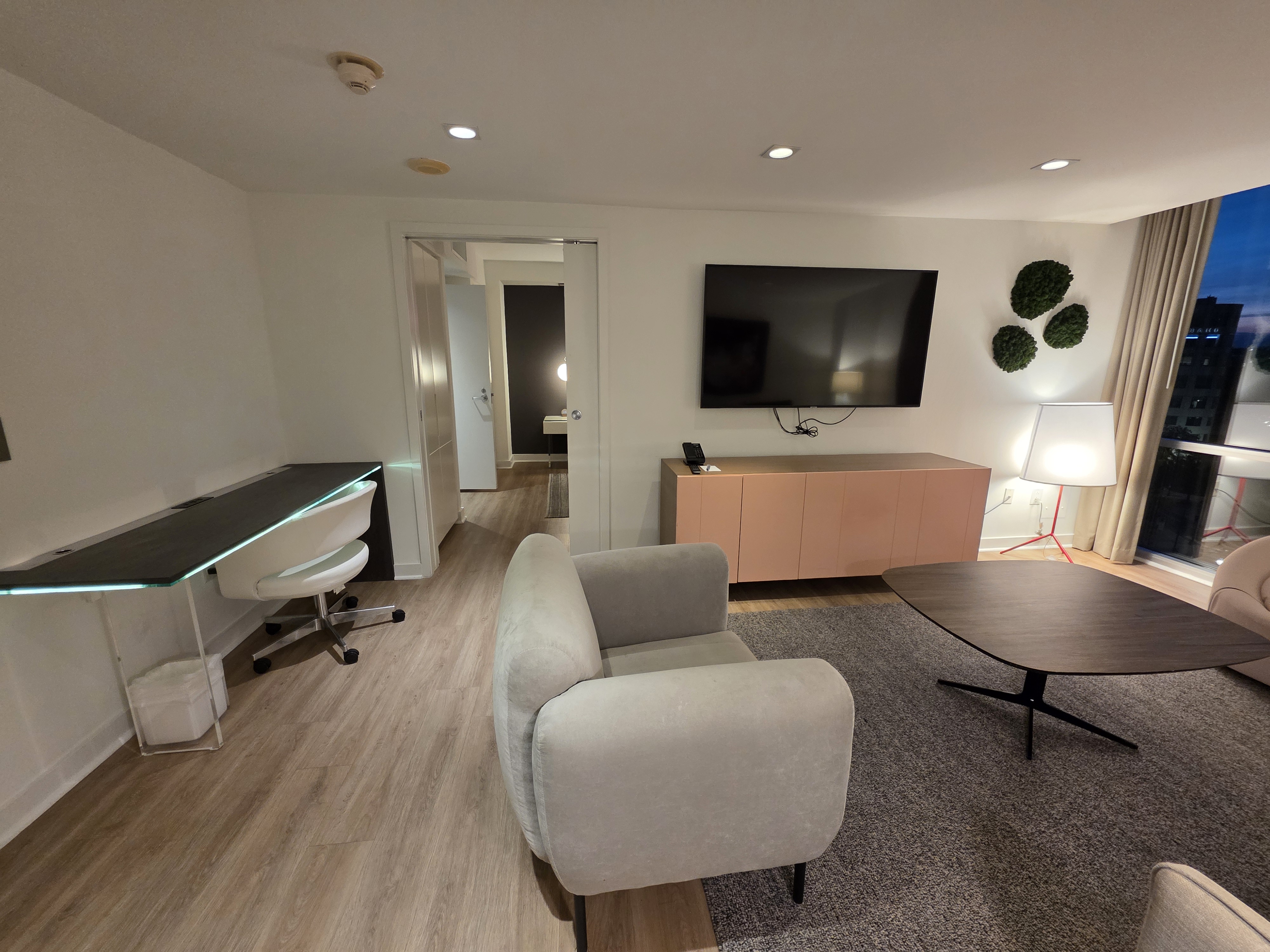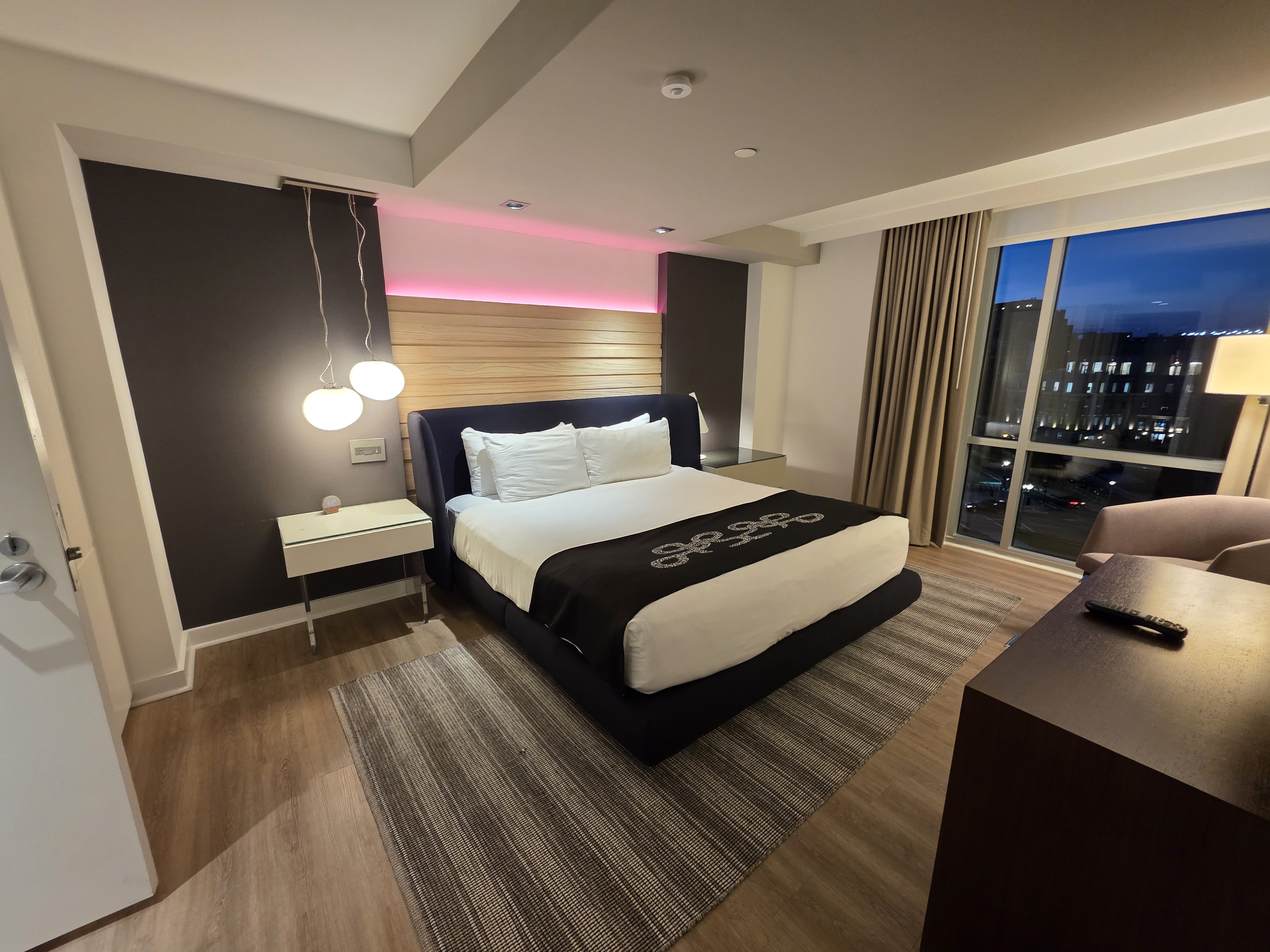 There’s a lobby bar and lounge, and a seasonal rooftop pool and lounge. The hotel charges a mandatory amenities (scam) fee of $35+tax per night ostensibly covering wifi; pool access (when it’s open); gym; in‑room coffee, tea, and bottled water; and local calls.