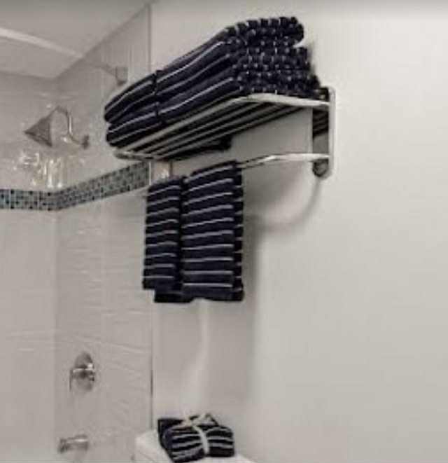 Microwave and mini-fridge are optional, even though the furniture is designed to accommodate them. Bathrooms vary more. Older tubs can stay in a conversion.