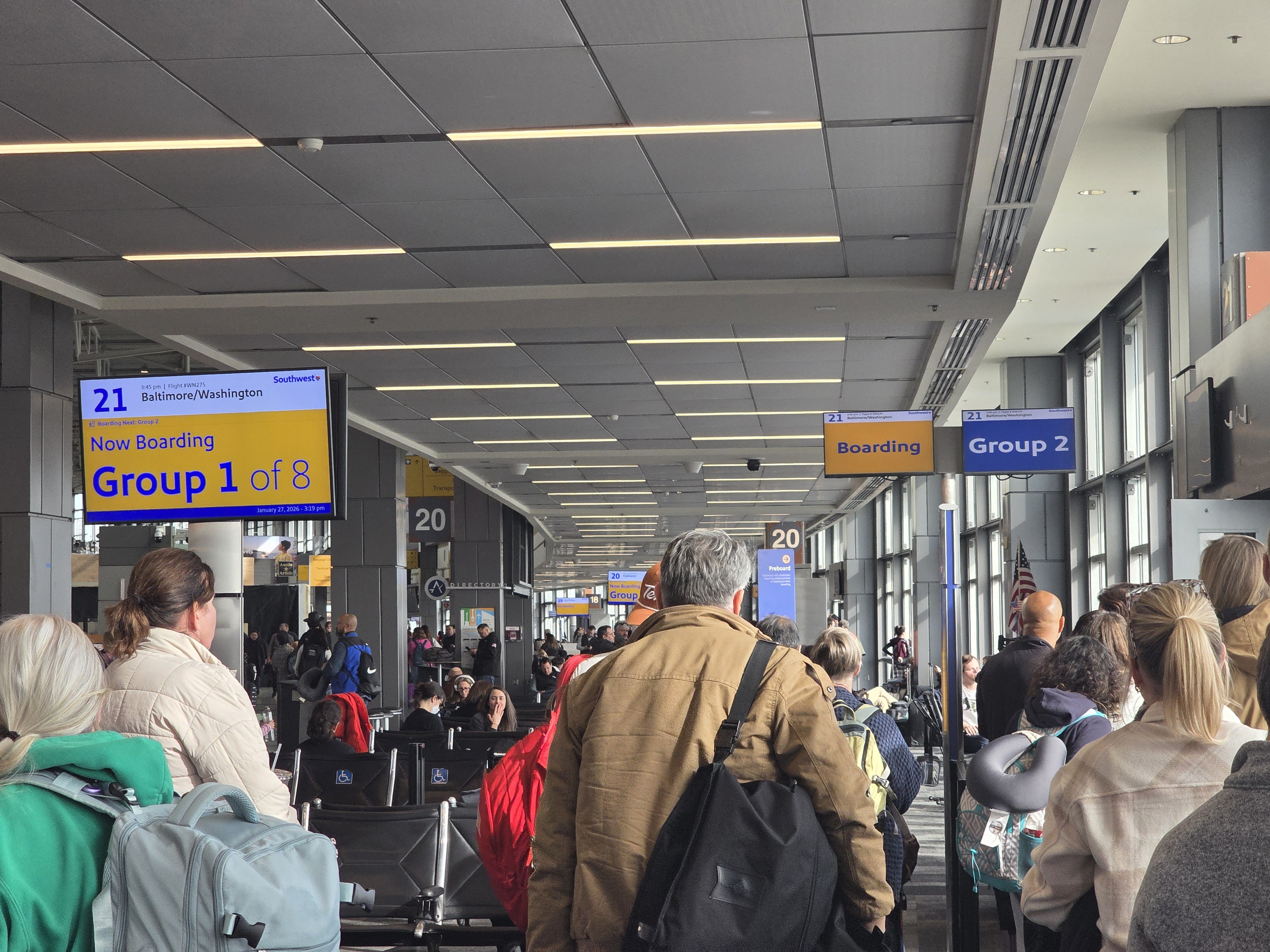 What happened today, and in some sense this is like United whose boarding is similarly bad, is that Southwest agents called up all group 1 and 2 passengers to line up before they began boarding.