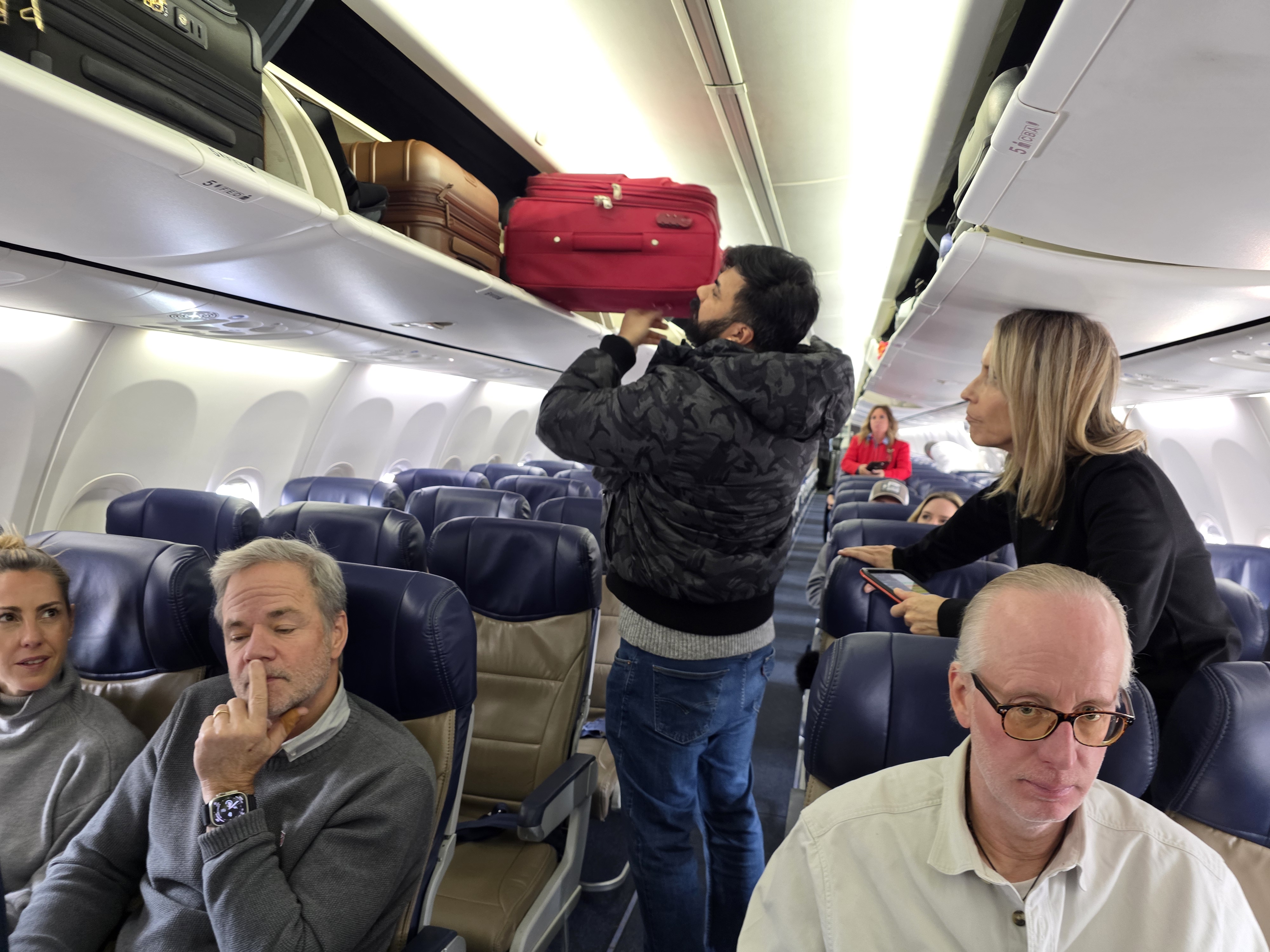 I experienced what could generously be called confusion, mostly on the part of flight attendants oddly enough. They were directing people and slowing down the boarding aisle as people found overhead bin space near their seats – rather than picking seats, in part, based on where there was bin space available.