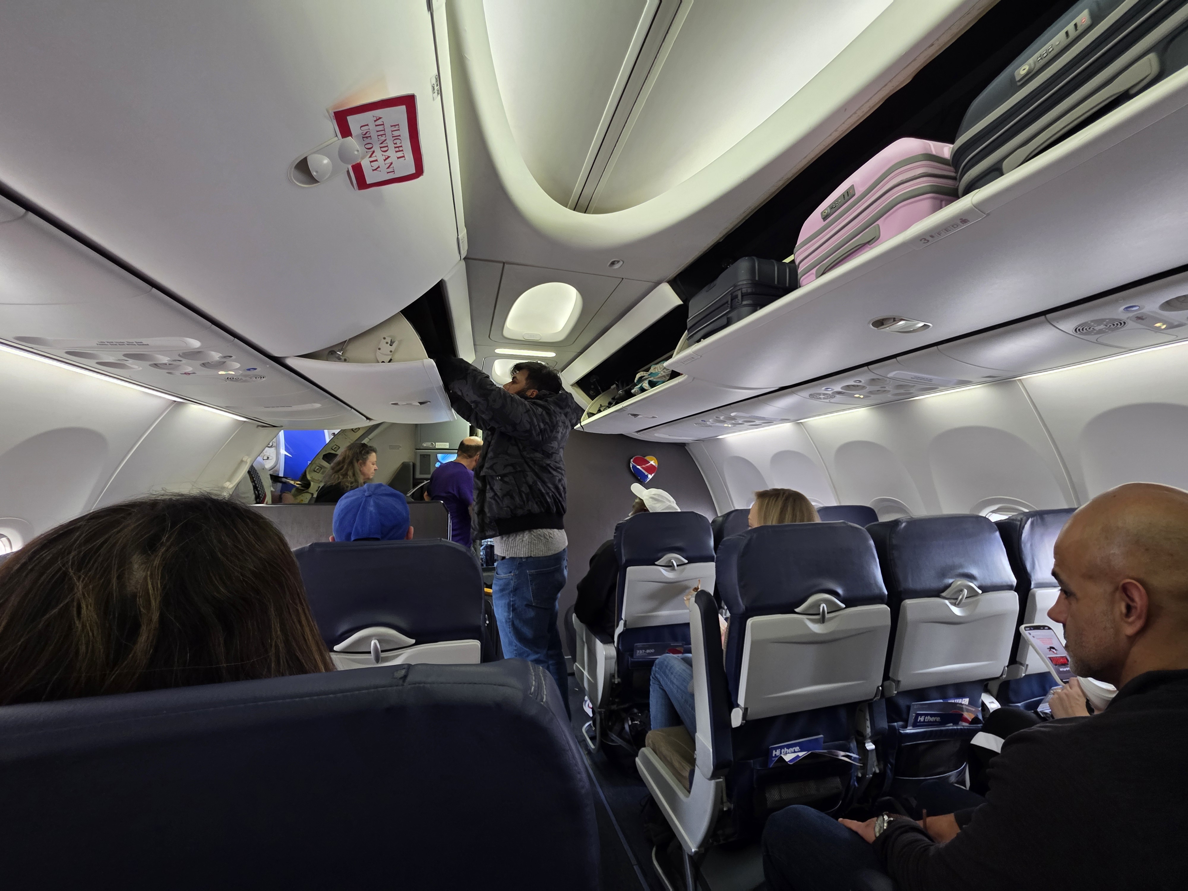 One benefit of assigned seats is supposed to be that you don’t need to line up before boarding begins in order to get the best seat. But you’re still lining up before boarding begins. And since Southwest now charges for checked bags, you have to board early to be able to bring carry-on bags on board.