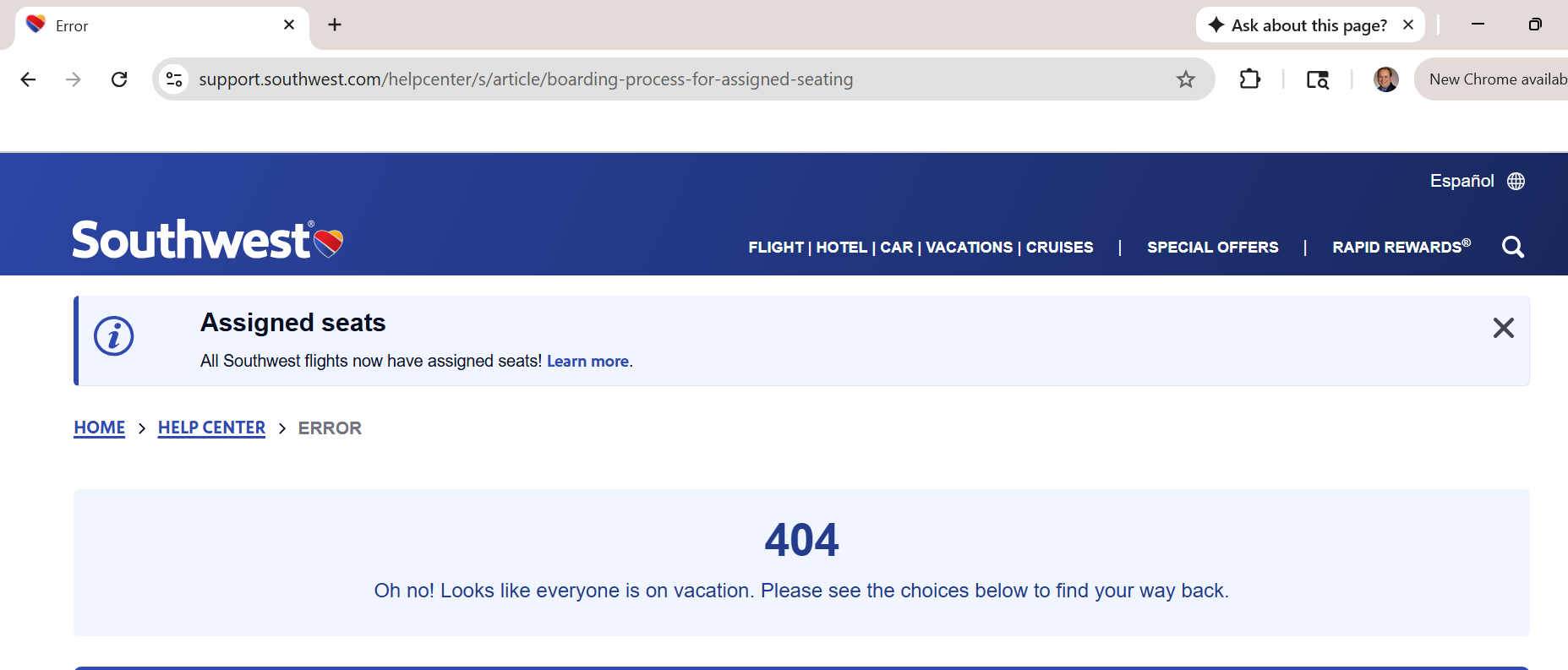 Was it a sign that the Southwest Airlines web page for its new boarding process was returning an error?