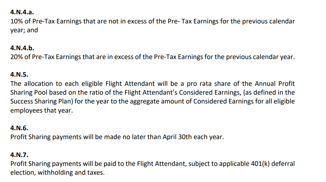 American Airlines flight attendants won the Delta formula for profit-sharing in their 2024 contract. The profit sharing pool gets 10% of the first $2.5 billion in profit and 20% after that.
