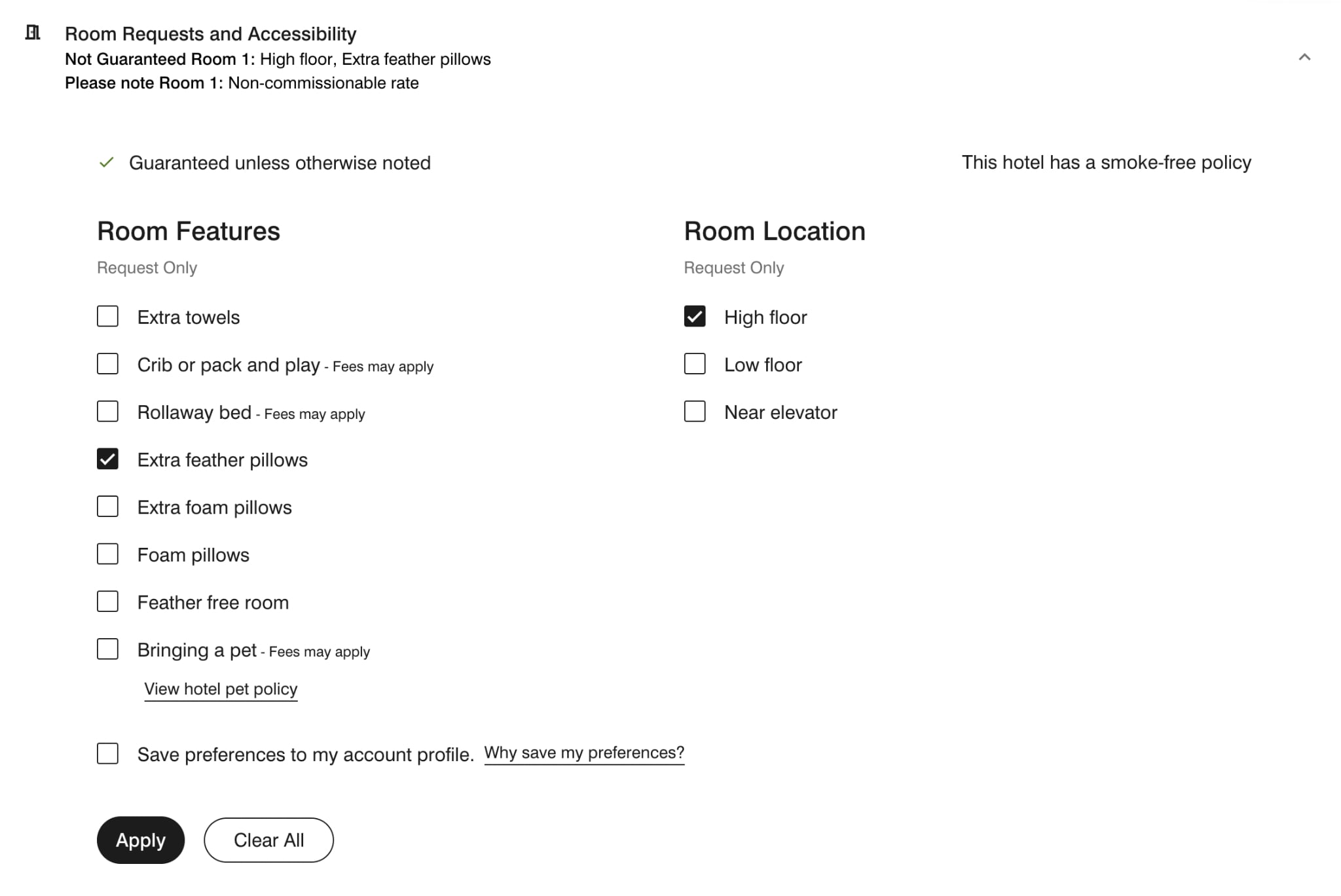 To be sure, hotels often ignored these requests. But there’s really no way to communicate with the hotel in advance specific requests that aren’t pre-identified checkboxes, like the extra blankets or what you might need for an allergy anymore.