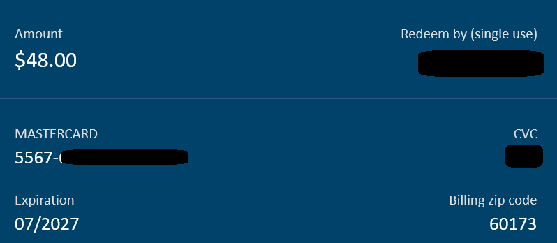 Still, my family wasn’t going to spend $50 at the airport. The voucher had to be used by the next day. So I pulled out my phone and added $45 to my Starbucks card as the easiest way to use most of the money. After all, what most airlines do is give out prepaid cards that are restricted by merchant category and Starbucks qualifies.
