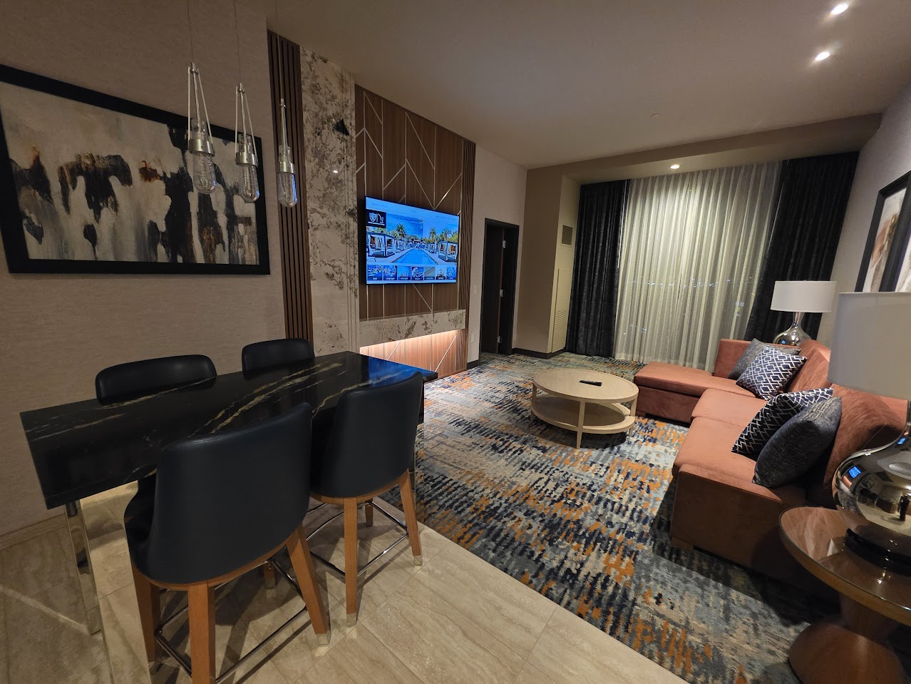 Room rates generally start at low–mid $100s with a wide band around that, plus a $40 resort fee. And a base room is 550 square feet.