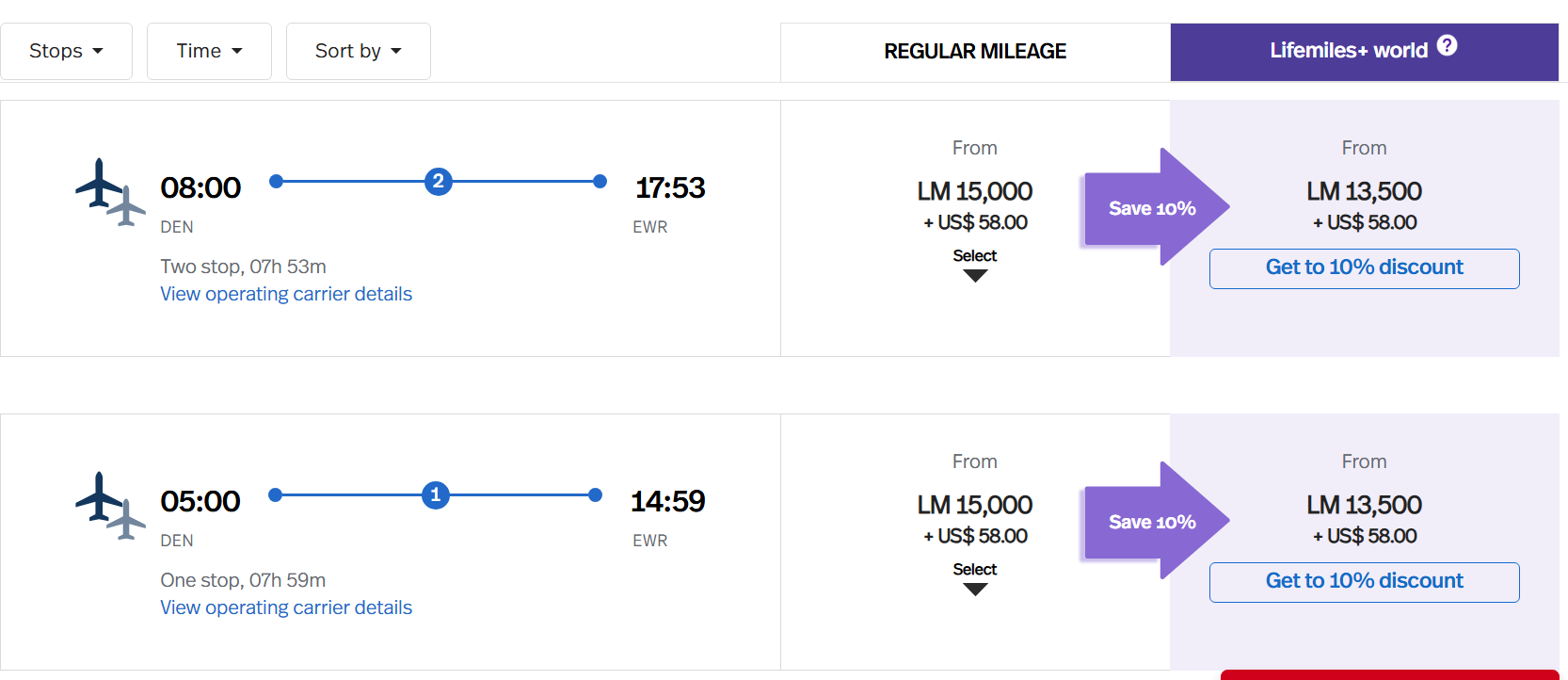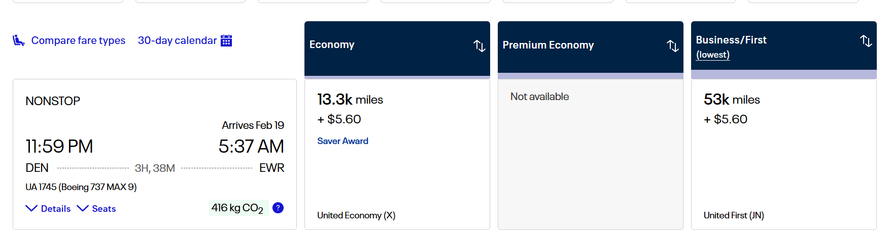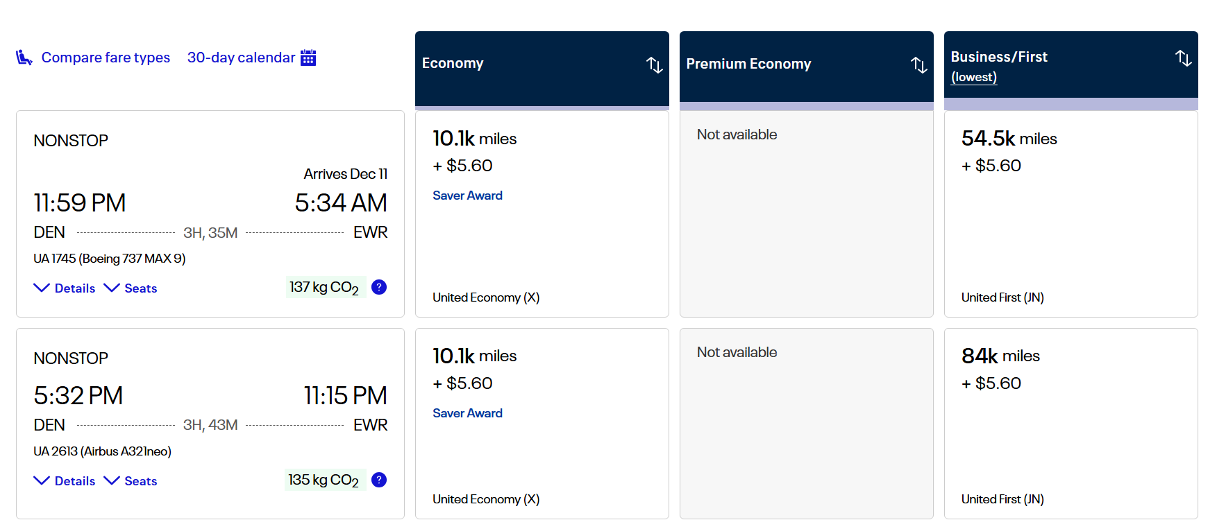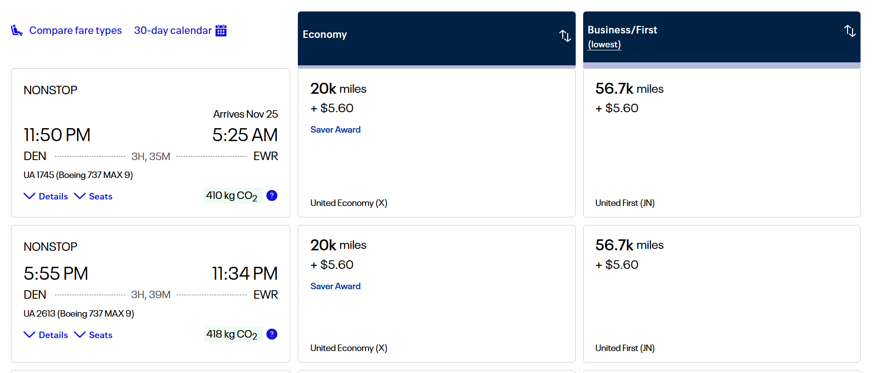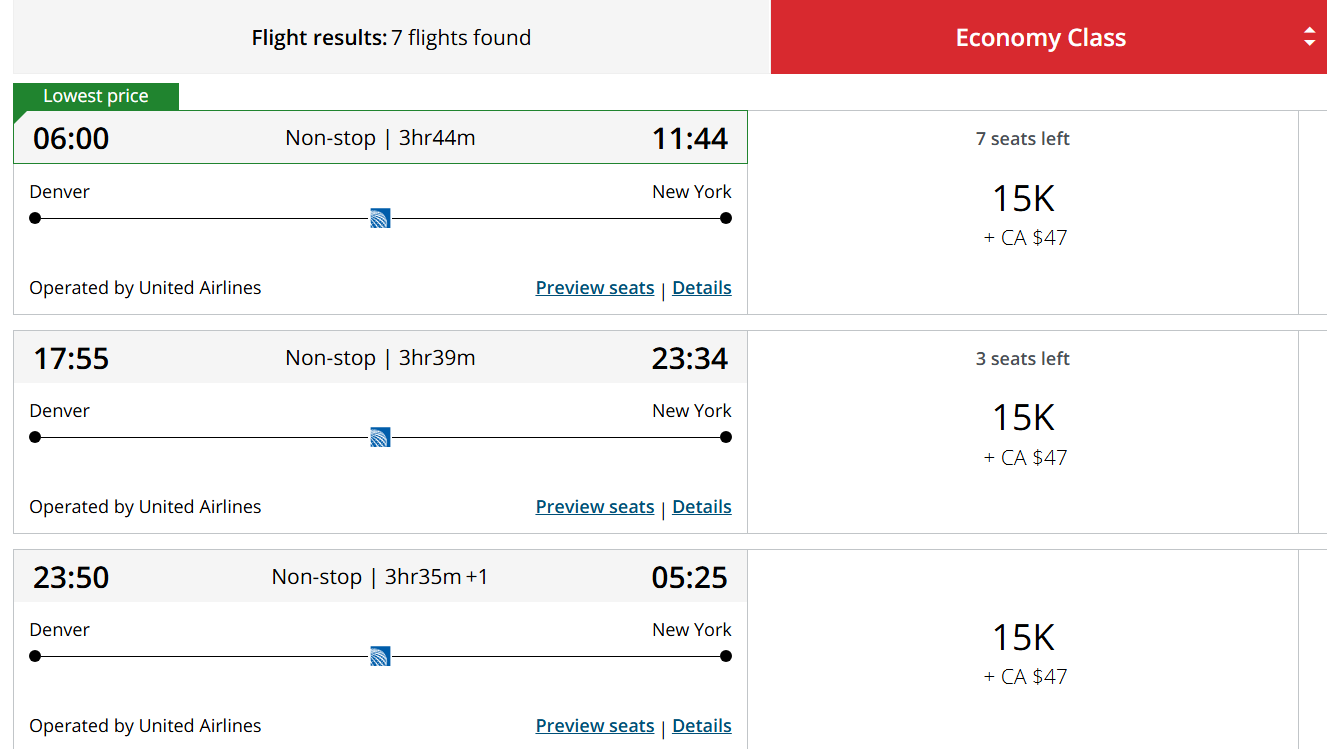 For instance, the lowest price of an award from Denver to Newark in economy within two weeks of travel has gone up from 15,000 miles to 20,000 miles. These are saver (lowest-price) awards. Those are the same seats that are made available to partner frequent flyer programs.