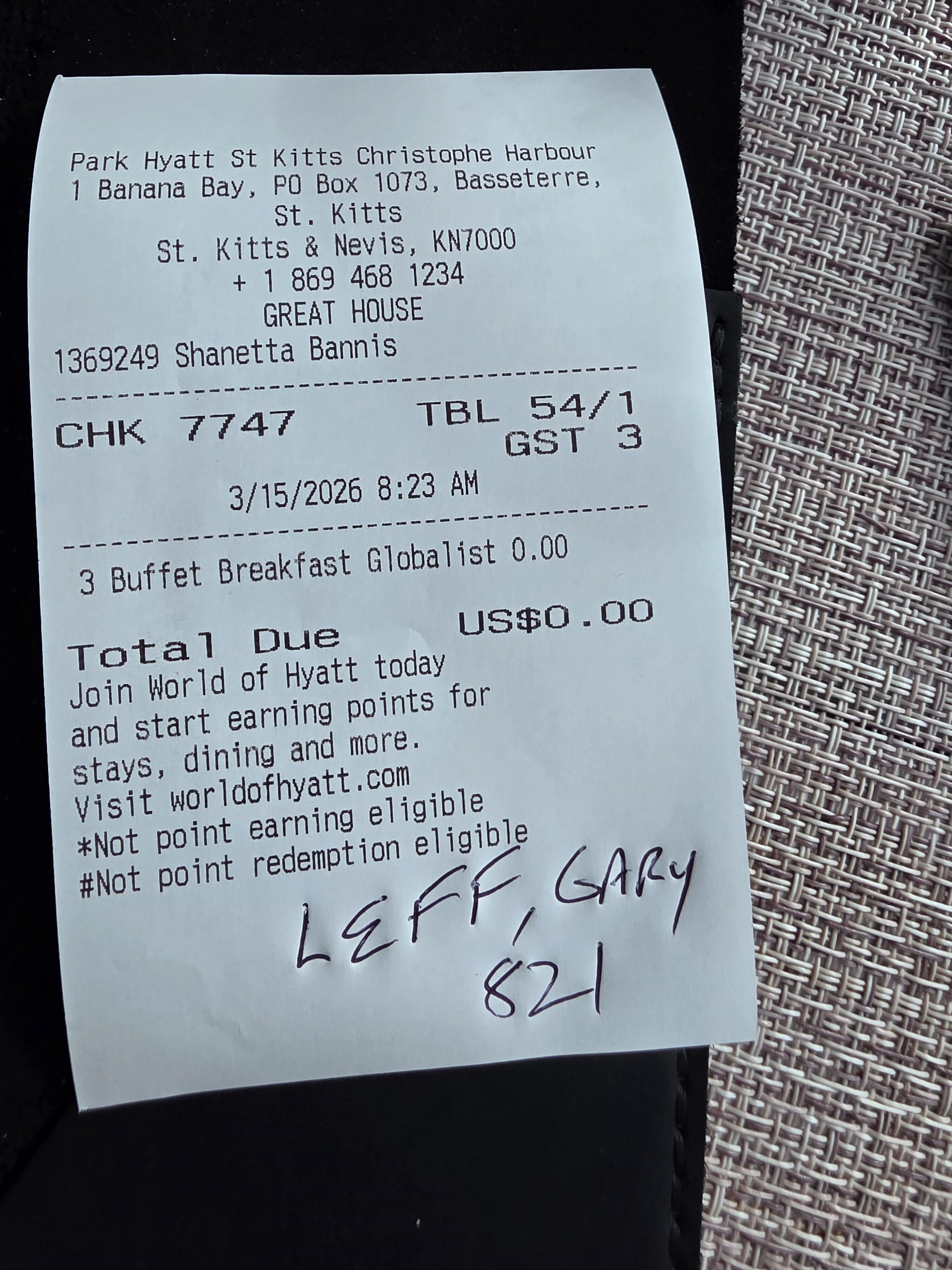 Overall some guests complain that dining on property is expensive (it’s a Park Hyatt resort, and a lot of ingredients need to be shipped in), that service can be relaxed or slow (it’s the Caribbean) – overall that there can be a mismatch of expectations. The complaints can be summed up as “slow but friendly” and “beautiful but expensive.” Honestly it does not seem expensive to me for a resort at this level. But it’s not a budget property either. They get a very large number of Globalist guests, and free Globalist breakfast definitely helps here.