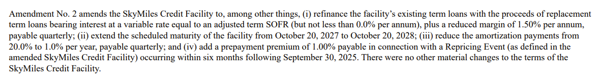 - Delta has refinanced and extended its mortgage on the SkyMiles program