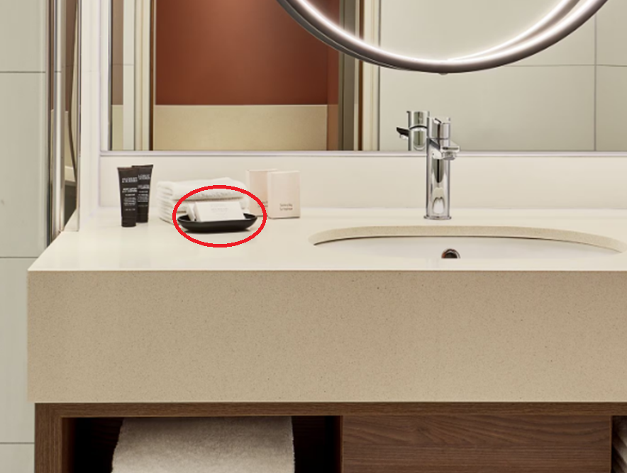 The hotel actually features a photo of bar soap in its guest room bathrooms on its website gallery!
