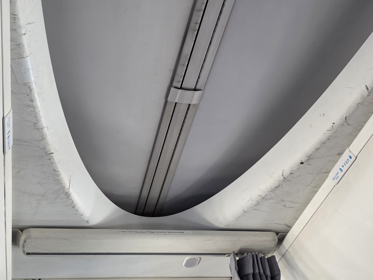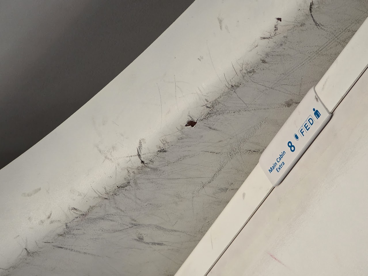 - I will never understand how the ceiling of an aircraft can get so scuffed. This seems to be the condition of American Airlines planes more than many of the other carriers I fly. This should have them questioning use of the specific material, and also addressing it in overnight maintenance. The cabin condition of a $50m+ aircraft should be kept up appropriately. Have some respect!