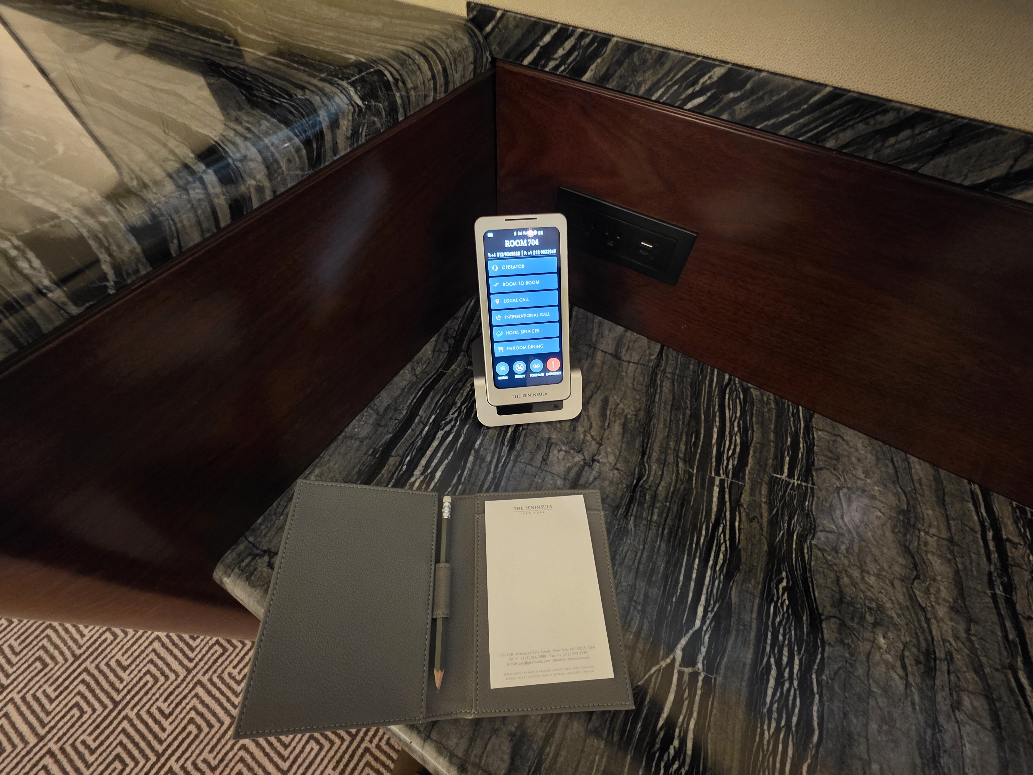 There are touch screen tablets to control everything in the room at the bedside and in the bathroom. These even, in theory, control the TV but I could never get that to function. Wifi was good in the room.