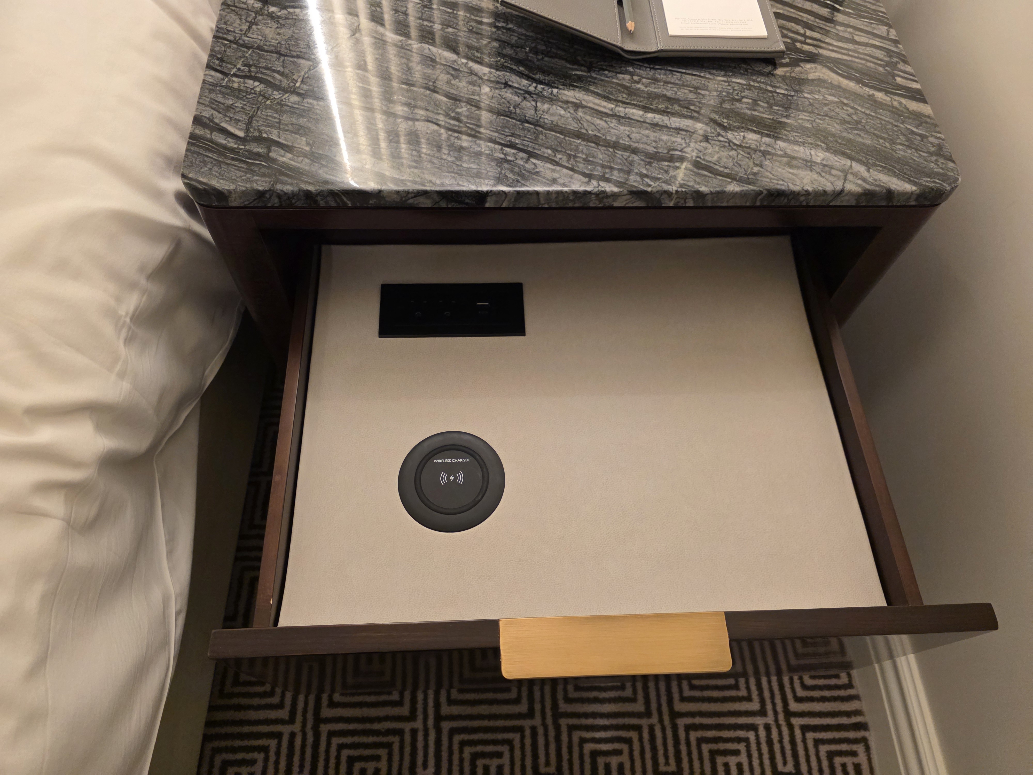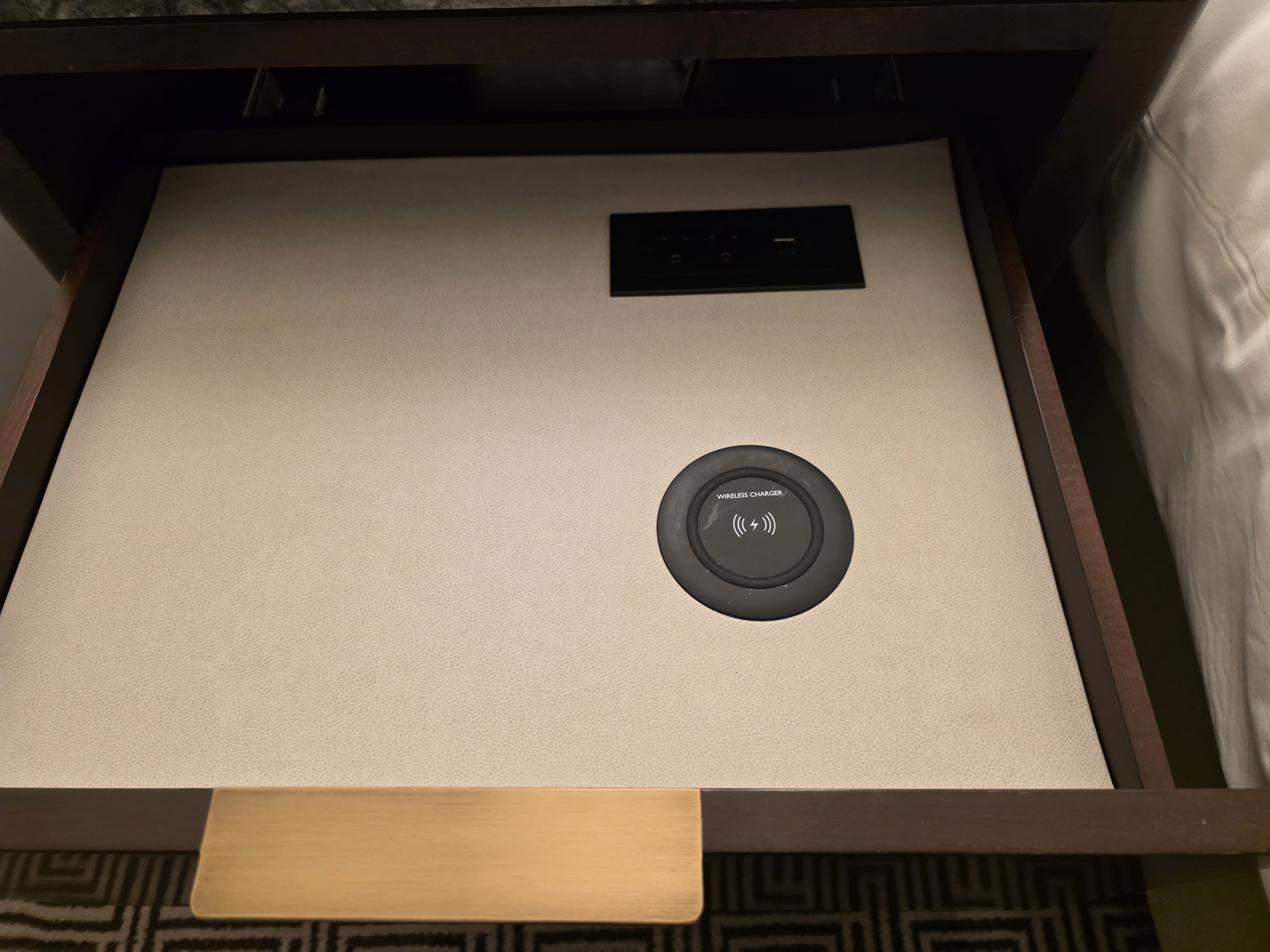 Then there was power was a drawer that pulled out beside the bed.