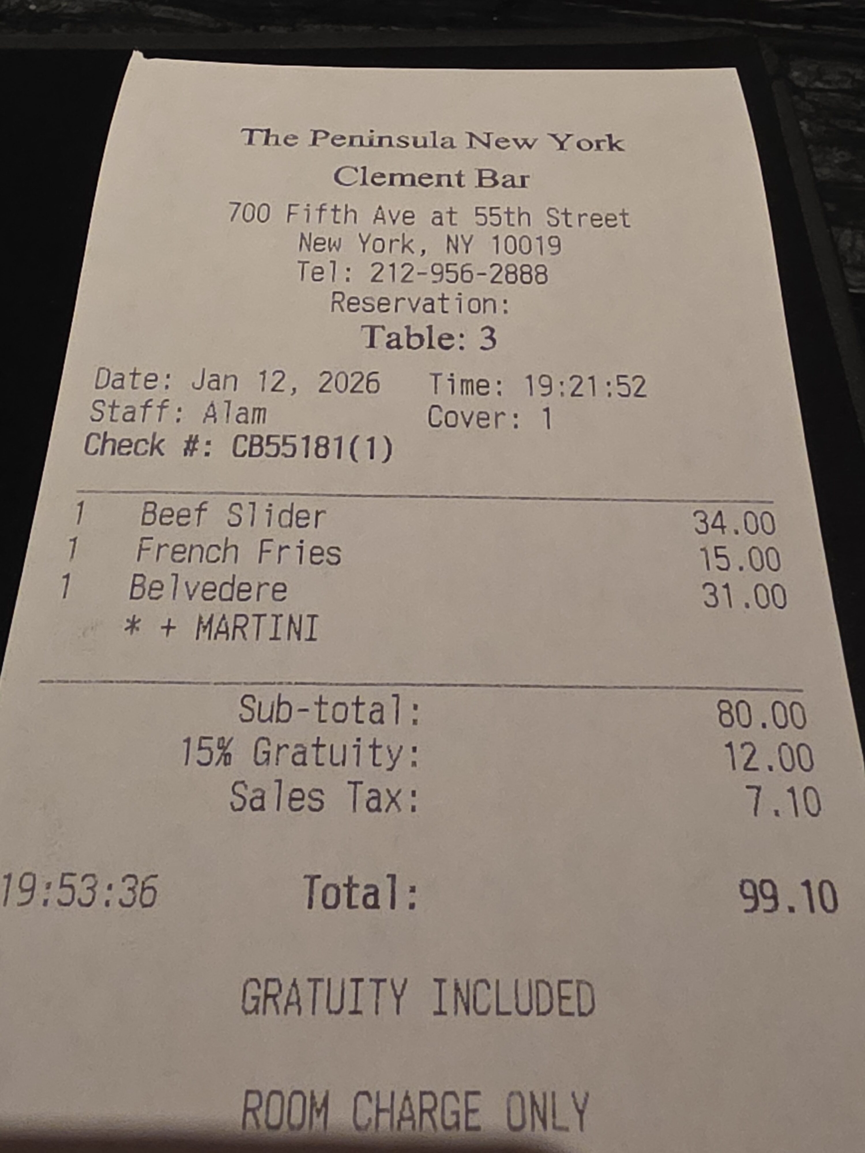 At check-in I was told that breakfast was a $54 credit, which is the amount of the ‘Fifth Avenue Breakfast’ in the restaurant. I presume this means $54 per person and it was clear I was staying alone. The breakfast credit is available in the restaurant or via room service.