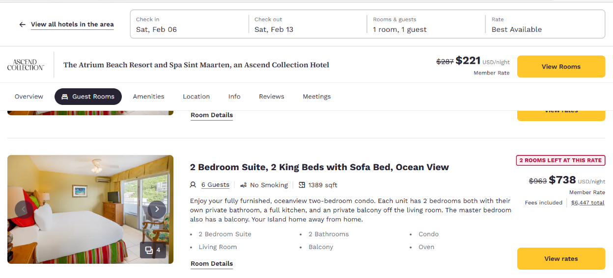 I was just in St Maarten three weeks ago and stayed at the property essentially next door to the Attrium. This is definitely a value play and, if you’re okay with a little walking to get to the beach, this could absolutely be a good option. The property is a little tired (best as I could tell from the outside), but some of the rooms have excellent views. Of course, I say “some”, because other rooms have atrocious views of a Burger King and a busy (and noisy) traffic intersection.